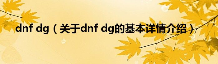 本文关于dnf dg的基本详情介绍就讲解完毕,希望对大家有所帮助。