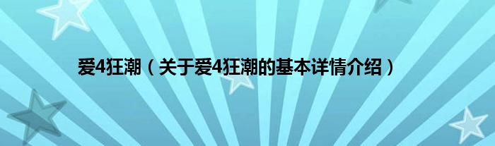 本文关于爱4狂潮的基本详情介绍就讲解完毕,希望对大家有所帮助。