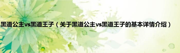 本文关于黑道公主vs黑道王子的基本详情介绍就讲解完毕,希望对大家有所帮助。
