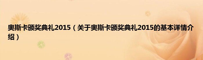本文关于奥斯卡颁奖典礼2015的基本详情介绍就讲解完毕,希望对大家有所帮助。