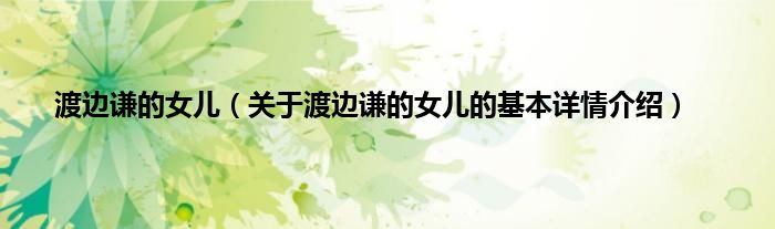 大家好我是小蝌蚪,渡边谦的女儿,关于渡边谦的女儿的基本详情介绍很多人还不知道,那么现在让我们一起来看看吧!