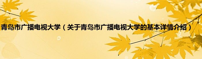 本文关于青岛市广播电视大学的基本详情介绍就讲解完毕,希望对大家有所帮助。
