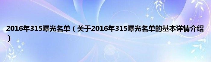 本文关于2016年315曝光名单的基本详情介绍就讲解完毕,希望对大家有所帮助。