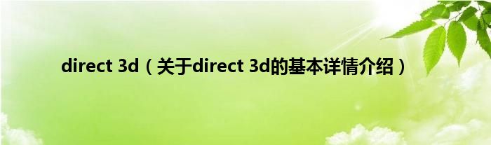 本文关于direct 3d的基本详情介绍就讲解完毕,希望对大家有所帮助。