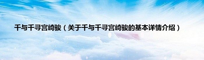 本文关于千与千寻宫崎骏的基本详情介绍就讲解完毕,希望对大家有所帮助。