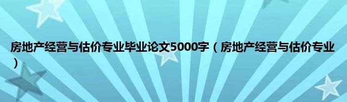 大家好,小问来为大家解答以上问题。房地产经营与估价专业毕业论文5000字,房地产经营与估价专业这个很多人还不知道,现在让我们一起来看看吧!