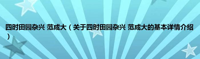 本文关于四时田园杂兴 范成大的基本详情介绍就讲解完毕,希望对大家有所帮助。