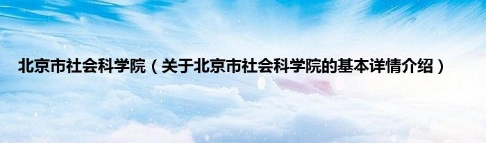 本文关于北京市社会科学院的基本详情介绍就讲解完毕,希望对大家有所帮助。