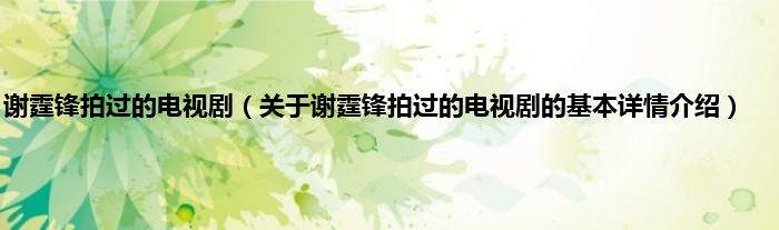 本文关于谢霆锋拍过的电视剧的基本详情介绍就讲解完毕,希望对大家有所帮助。