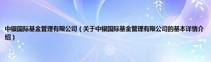 本文关于中银国际基金管理有限公司的基本详情介绍就讲解完毕,希望对大家有所帮助。