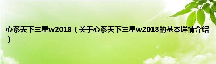 本文关于心系天下三星w2018的基本详情介绍就讲解完毕,希望对大家有所帮助。