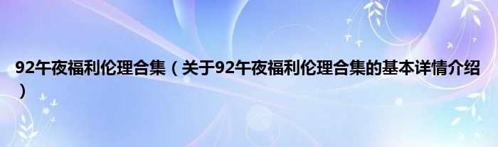 本文关于92午夜福利伦理合集的基本详情介绍就讲解完毕,希望对大家有所帮助。