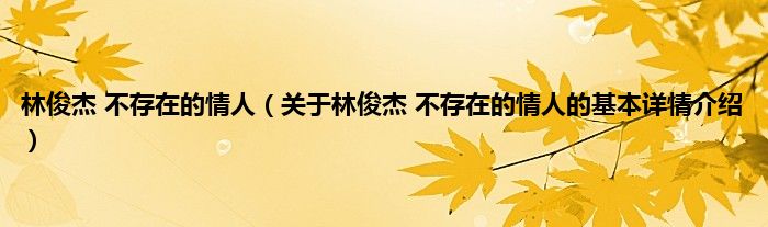 本文关于林俊杰 不存在的情人的基本详情介绍就讲解完毕,希望对大家有所帮助。