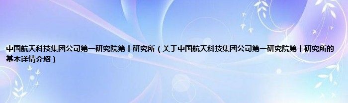 本文关于中国航天科技集团公司第一研究院第十研究所的基本详情介绍就讲解完毕,希望对大家有所帮助。