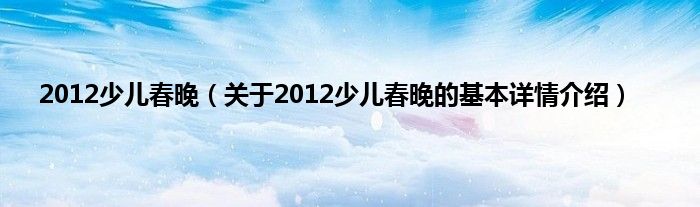 本文关于2012少儿春晚的基本详情介绍就讲解完毕,希望对大家有所帮助。