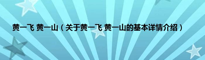 本文关于黄一飞 黄一山的基本详情介绍就讲解完毕,希望对大家有所帮助。