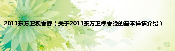本文关于2011东方卫视春晚的基本详情介绍就讲解完毕,希望对大家有所帮助。