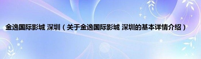 本文关于金逸国际影城 深圳的基本详情介绍就讲解完毕,希望对大家有所帮助。