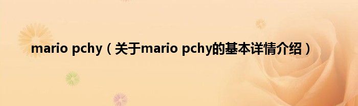 本文关于mario pchy的基本详情介绍就讲解完毕,希望对大家有所帮助。