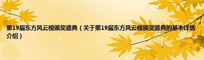 本文关于第19届东方风云榜颁奖盛典的基本详情介绍就讲解完毕,希望对大家有所帮助。