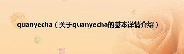 本文关于quanyecha的基本详情介绍就讲解完毕,希望对大家有所帮助。