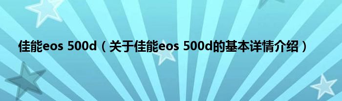 本文关于佳能eos 500d的基本详情介绍就讲解完毕,希望对大家有所帮助。