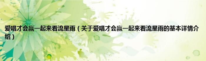 本文关于爱唱才会赢一起来看流星雨的基本详情介绍就讲解完毕,希望对大家有所帮助。