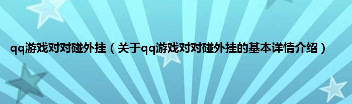 本文关于qq游戏对对碰外挂的基本详情介绍就讲解完毕,希望对大家有所帮助。