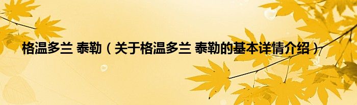 本文关于格温多兰 泰勒的基本详情介绍就讲解完毕,希望对大家有所帮助。