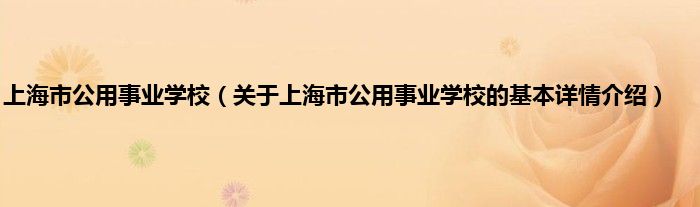 本文关于上海市公用事业学校的基本详情介绍就讲解完毕,希望对大家有所帮助。