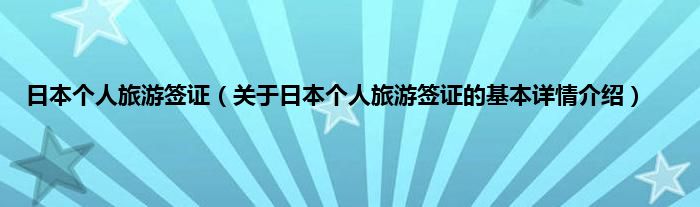 本文关于日本个人旅游签证的基本详情介绍就讲解完毕,希望对大家有所帮助。