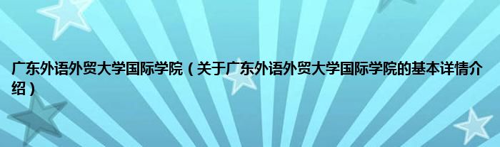 本文关于广东外语外贸大学国际学院的基本详情介绍就讲解完毕,希望对大家有所帮助。