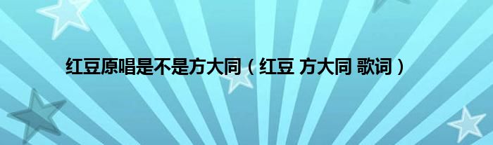 大家好,小问来为大家解答以上问题。红豆原唱是不是方大同,红豆 方大同 歌词这个很多人还不知道,现在让我们一起来看看吧!