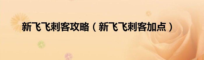 以上就是【新飞飞刺客攻略,新飞飞刺客加点】相关内容。