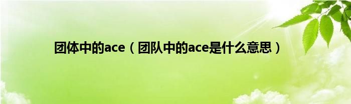 大家好,小问来为大家解答以上问题。团体中的ace,团队中的ace是什么意思这个很多人还不知道,现在让我们一起来看看吧!