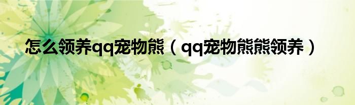 以上就是【怎么领养qq宠物熊,qq宠物熊熊领养】相关内容。