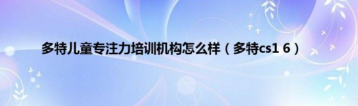 以上就是【多特儿童专注力培训机构怎么样,多特cs1 6】相关内容。