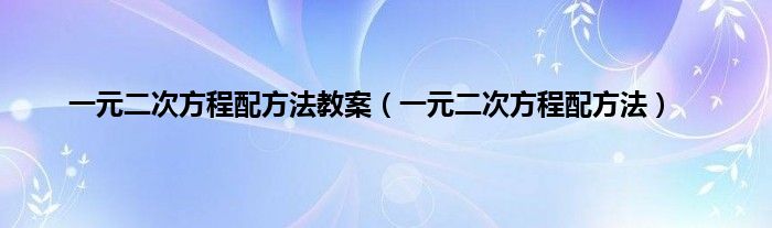 以上就是【一元二次方程配方法教案,一元二次方程配方法】相关内容。