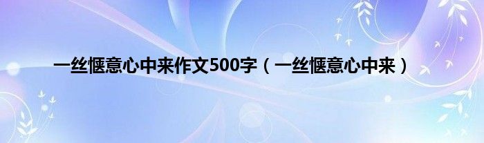 大家好,小问来为大家解答以上问题。一丝惬意心中来作文500字,一丝惬意心中来这个很多人还不知道,现在让我们一起来看看吧!