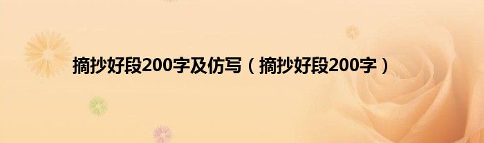 大家好,小问来为大家解答以上问题。摘抄好段200字及仿写,摘抄好段200字这个很多人还不知道,现在让我们一起来看看吧!