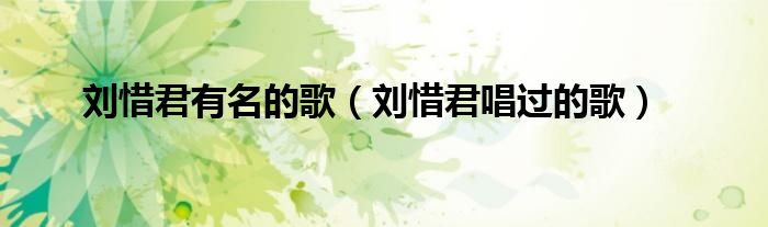 以上就是【刘惜君有名的歌,刘惜君唱过的歌】相关内容。