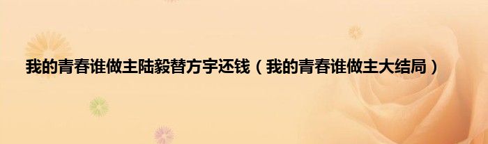 以上就是【我的青春谁做主陆毅替方宇还钱,我的青春谁做主大结局】相关内容。