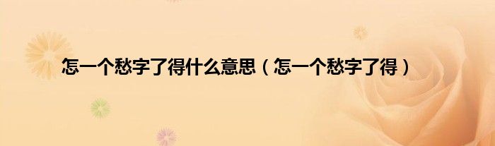 以上就是【怎一个愁字了得什么意思,怎一个愁字了得】相关内容。