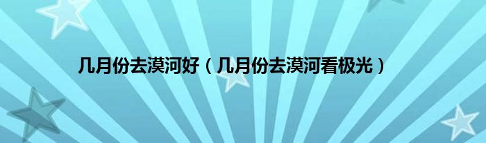 大家好,小问来为大家解答以上问题。几月份去漠河好,几月份去漠河看极光这个很多人还不知道,现在让我们一起来看看吧!
