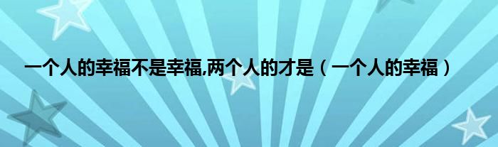 以上就是【一个人的幸福不是幸福,两个人的才是,一个人的幸福】相关内容。