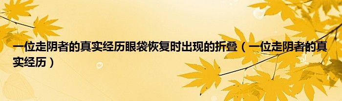 大家好,小问来为大家解答以上问题。一位走阴者的真实经历眼袋恢复时出现的折叠,一位走阴者的真实经历这个很多人还不知道,现在让我们一起来看看吧!