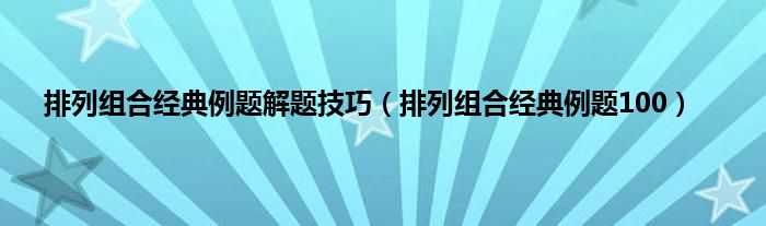 大家好,小问来为大家解答以上问题。排列组合经典例题解题技巧,排列组合经典例题100这个很多人还不知道,现在让我们一起来看看吧!
