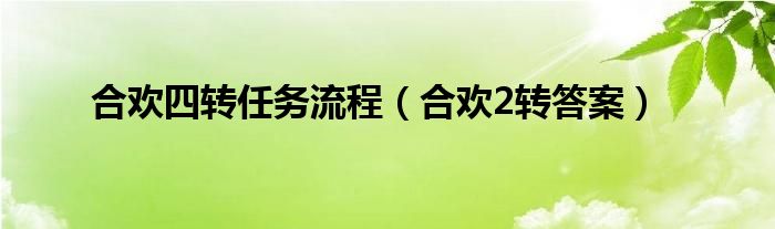 大家好,小问来为大家解答以上问题。合欢四转任务流程,合欢2转答案这个很多人还不知道,现在让我们一起来看看吧!