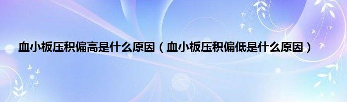 本文,血小板压积偏高是什么原因,血小板压积偏低是什么原因到此就分享完毕,希望对大家有所帮助。
