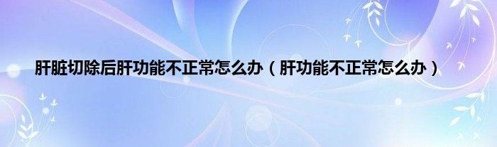 本文,肝脏切除后肝功能不正常怎么办,肝功能不正常怎么办到此就分享完毕,希望对大家有所帮助。